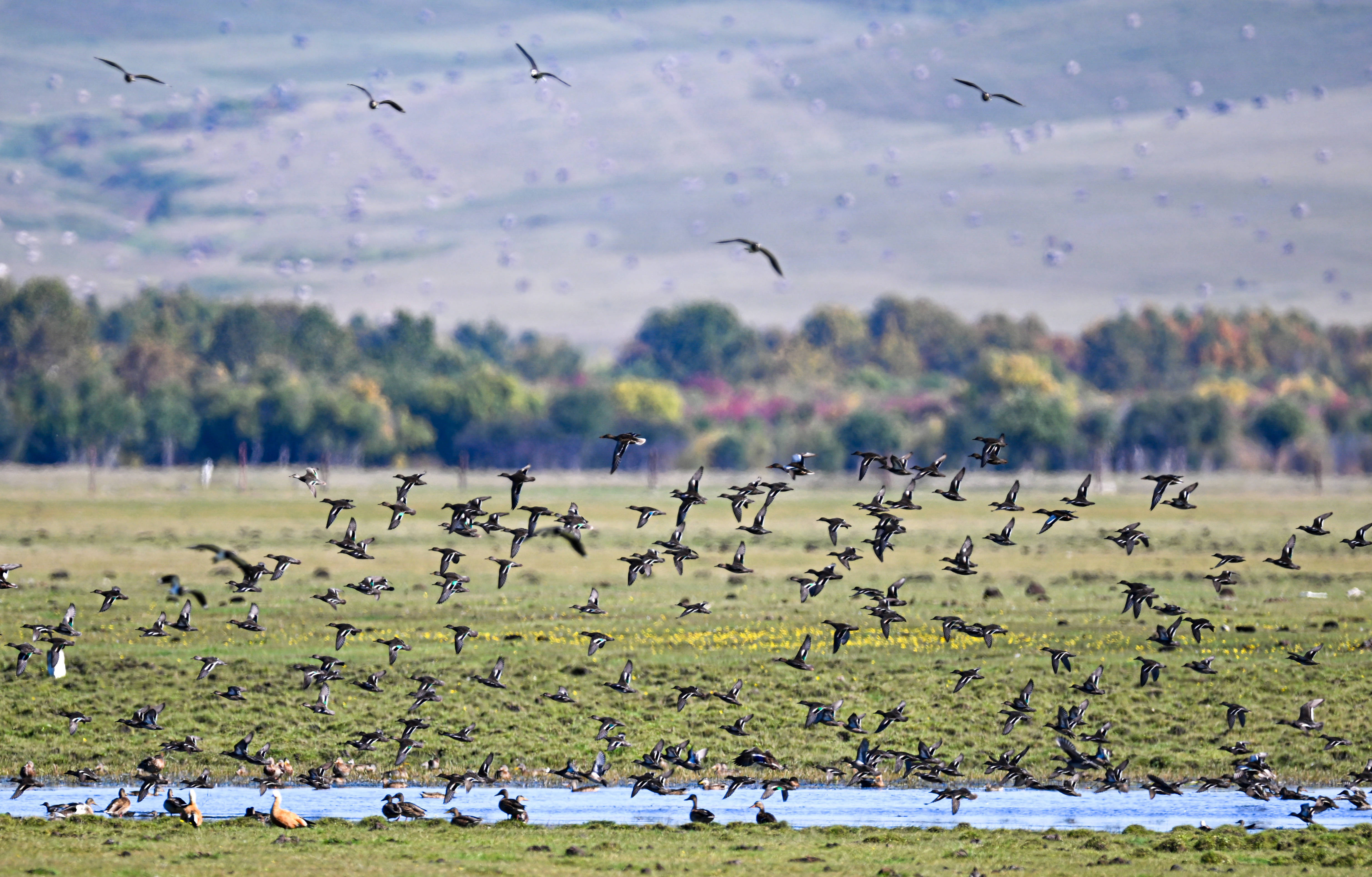 9月15日在额尔古纳湿地自然保护区拍摄的赤麻鸭。新华社记者 贝赫 摄金气秋分