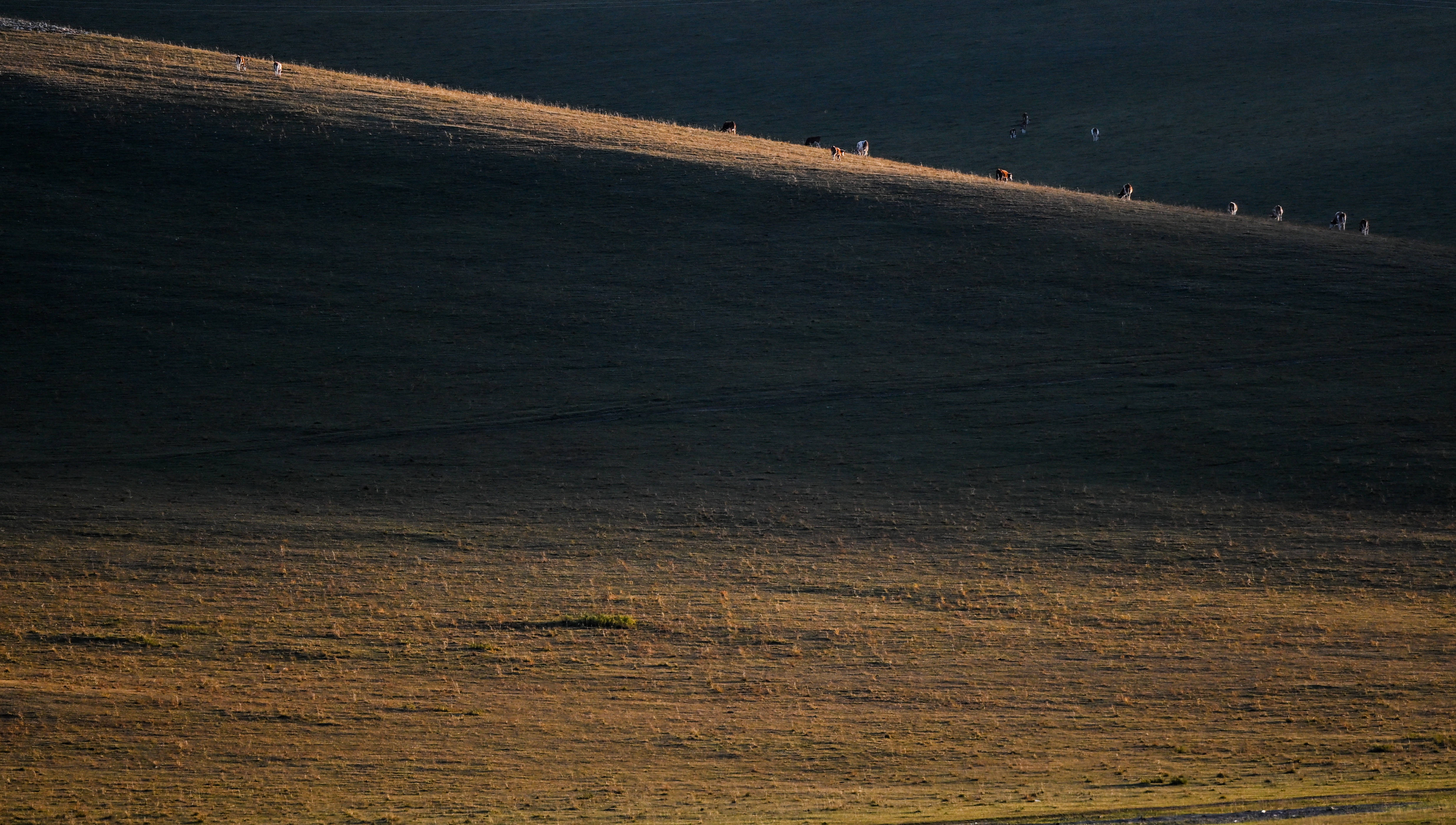 9月19日,畜群在草原上觅食。新华社记者 连振 摄暑退秋澄气转凉