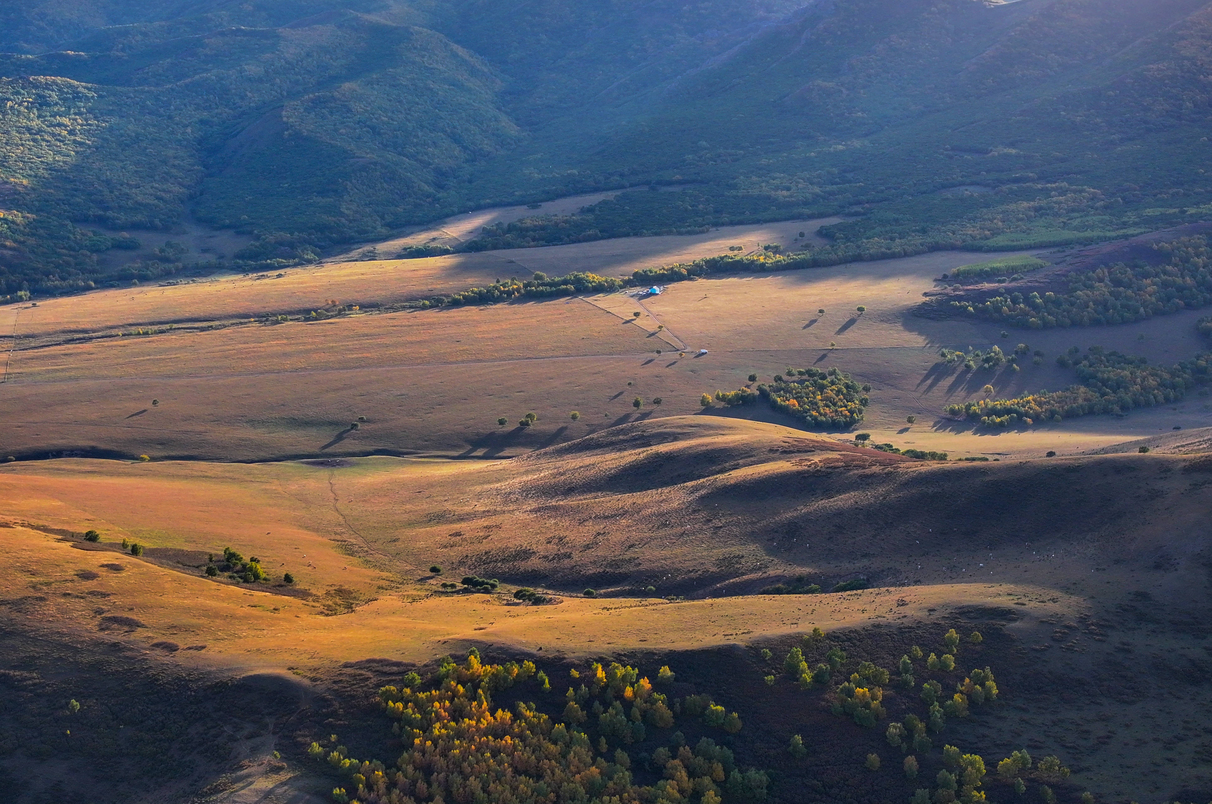 这是9月20日拍摄的罕山秋景(无人机照片)。新华社记者 连振 摄如果说春天是播种希望的季节