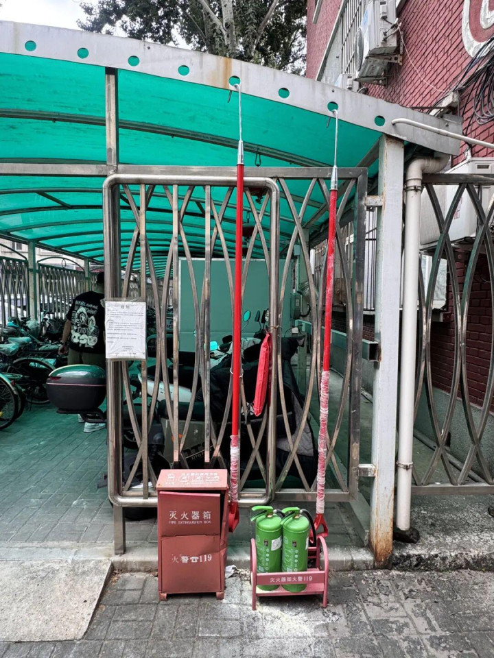 社区书记介绍,该车棚于今年8月底完成了消防设施升级,新增了阻燃隔板和水源设备等。此外,为了更好的应对此类意外情况,社区内的保安和社区工作人员在入职之初均进行了消防培训,并完成“一警六员”考核,在节假日前及火灾高发时期,还会组织开展消防演练和进一步的培训。同时,为了让更多人掌握消防知识,街道还不定期的组织居民参与消防培训。