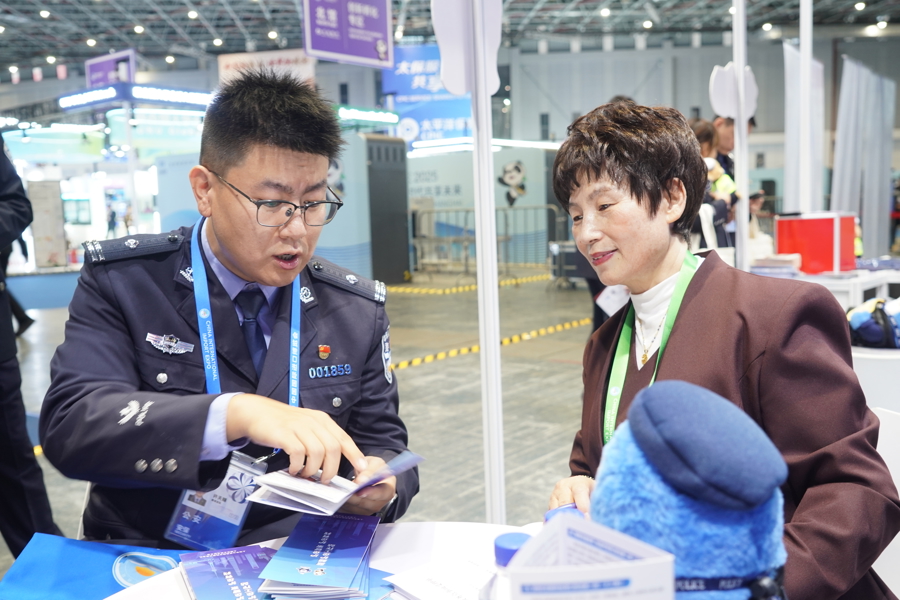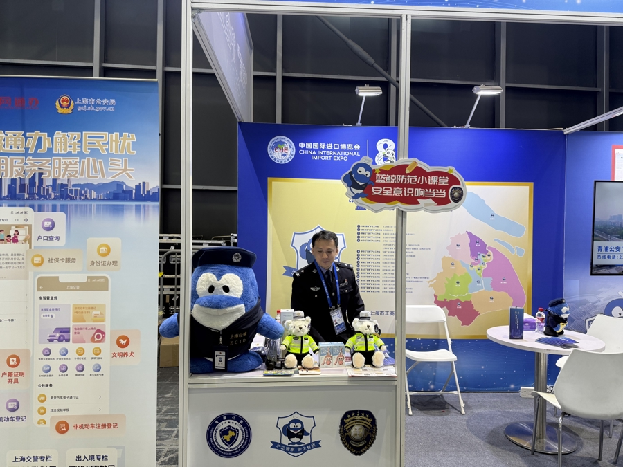 今年进博会,上海公安机关首次在展馆内设置“蓝鲸”护企服务点,由经侦、法制等多部门民警联合入驻,为企业提供一对一咨询服务,同时开展涉企犯罪报案指引、涉企纠纷调解等工作,让企业在展馆内就能享受到专业的护企服务。